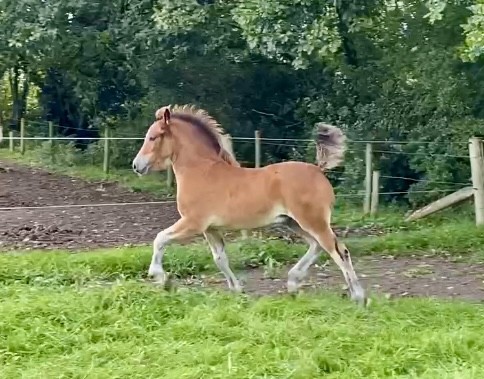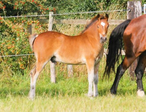 By Kaybrook Euros-Ddu, and out of Kaybrook Valour's Bluebelle, (by Kaybrook Valour). This gorgeous and confident boy is bay with a white star on a beautiful head. He will make at least 14.2hh and is sure to make a fantastic ridden horse. He has the most amazing presence and already holds himself so well. Red will be available at weaning in the autumn. He has been regularly wormed and will have had his first vaccine and be halter trainedby the time of sale.