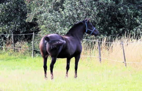 Kaybrook Velvet Now rising 5yrs old, Velvet is by Ynyslyns Orlando and out of Caemansel Georgina (Gwenllan Brynmor). She is dilute black with 4 little white socks and likely to make at least 14.3hh. She has been scanned in foal for 2026 to Kaybrook Euros-Ddu.